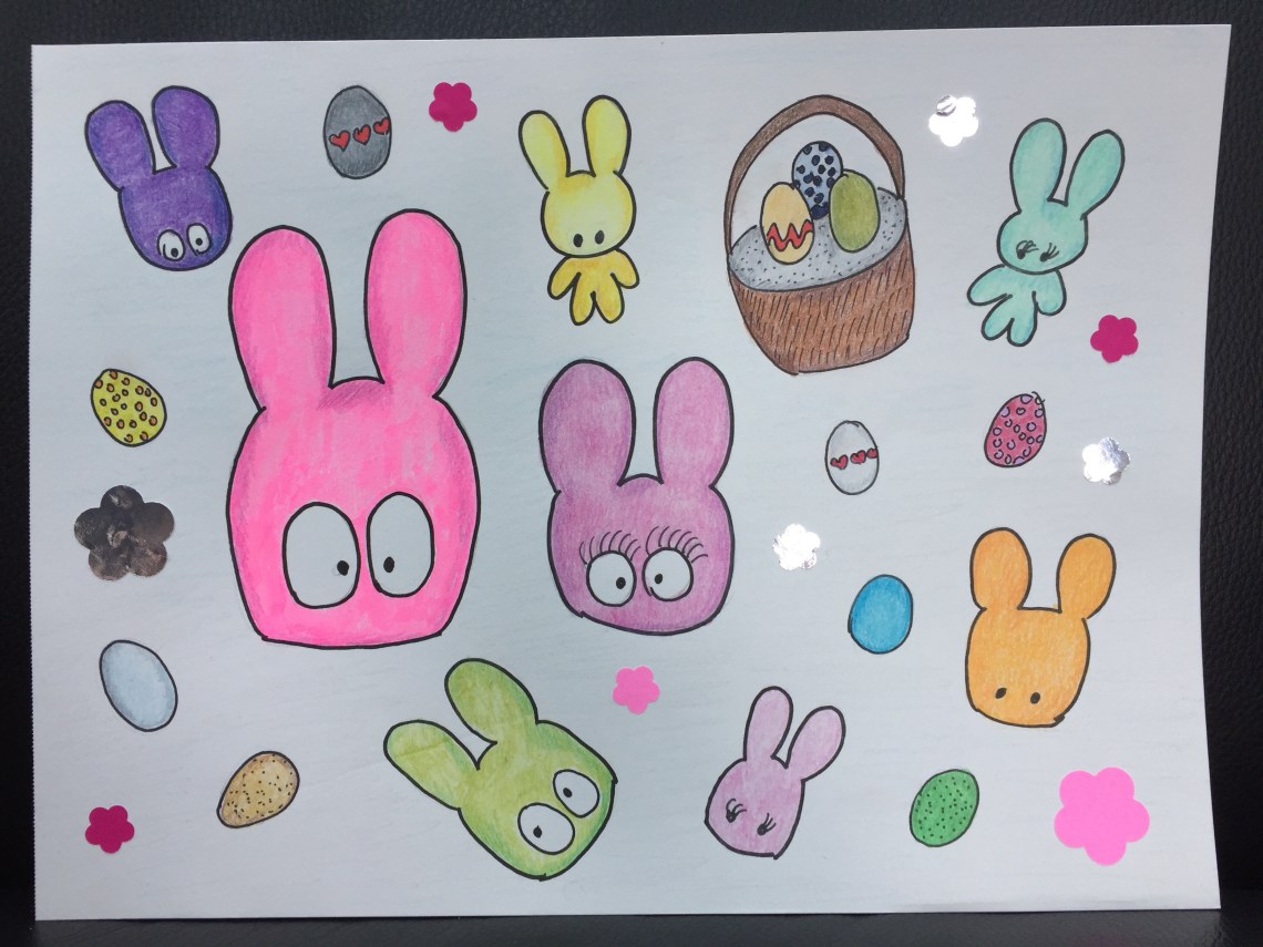 🐰 It all started last Thursday when I started doodling away at home using coloured pencils and markers 🎨 Was forward to drawing more kawaii bunnes this Easter weekend! 🤗 I could have added more embellishments in addition to the cut-outs… sequins would have been cool!