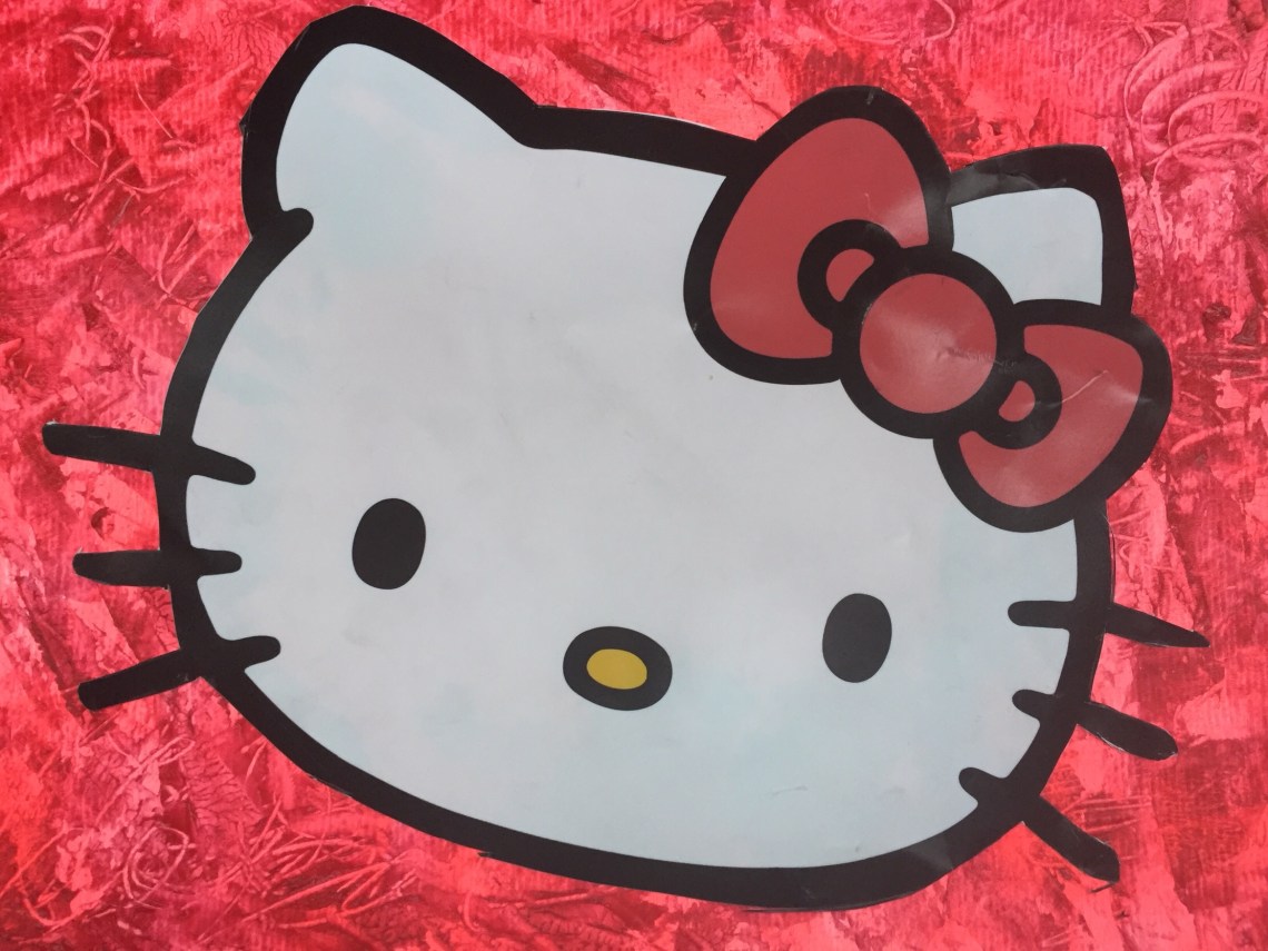 Another Hello Kitty art! I was going through my stuff last Monday and found a cheap flimsy HK suitcase I was wanting to get rid of for years. As I was tossing it out I found a big piece of paper inside that came in with the suitcase featuring Hello Kitty’s face. Whilst I was happy to get rid of the suitcase, I didn’t want to part with that paper because it was too cute!