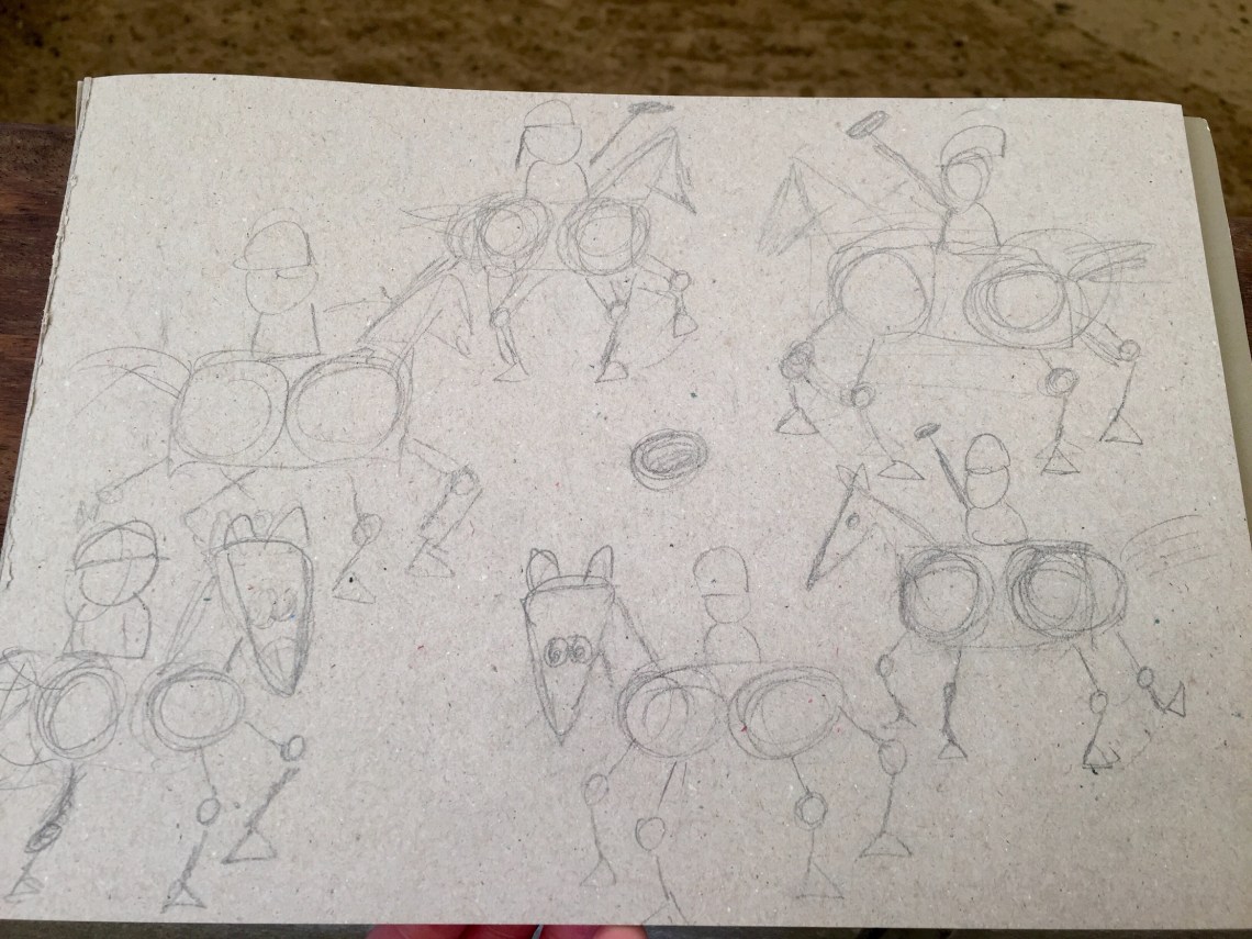 Here I used the grey and brown sets of Koh I Noor coloured pencils on beige paper.