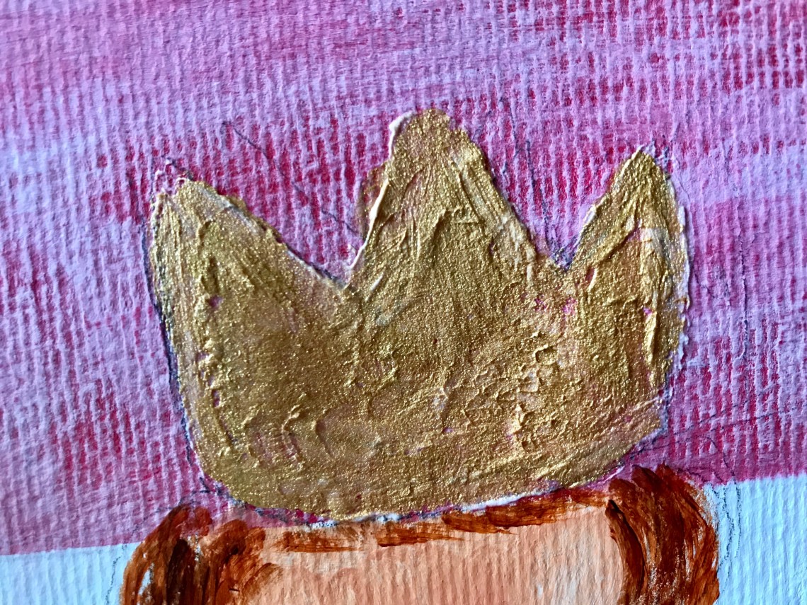 I had the idea of adding a layer of modeling paste for the crowns for added texture and enhancement and also mixed the paste with gold acrylic paint for thickness. How about that!