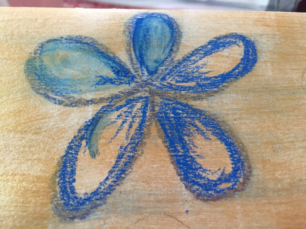 So I instead continued on and only partially filled in the flower with the same pastel. I was curious what would happen if I took a small brush and dipped it in acrylic paint slightly diluted with water. Wow it certainly gave an opaque version of watercolour but with colours being more intense. I followed the same technique with the other flowers in the painting in their respective colours.