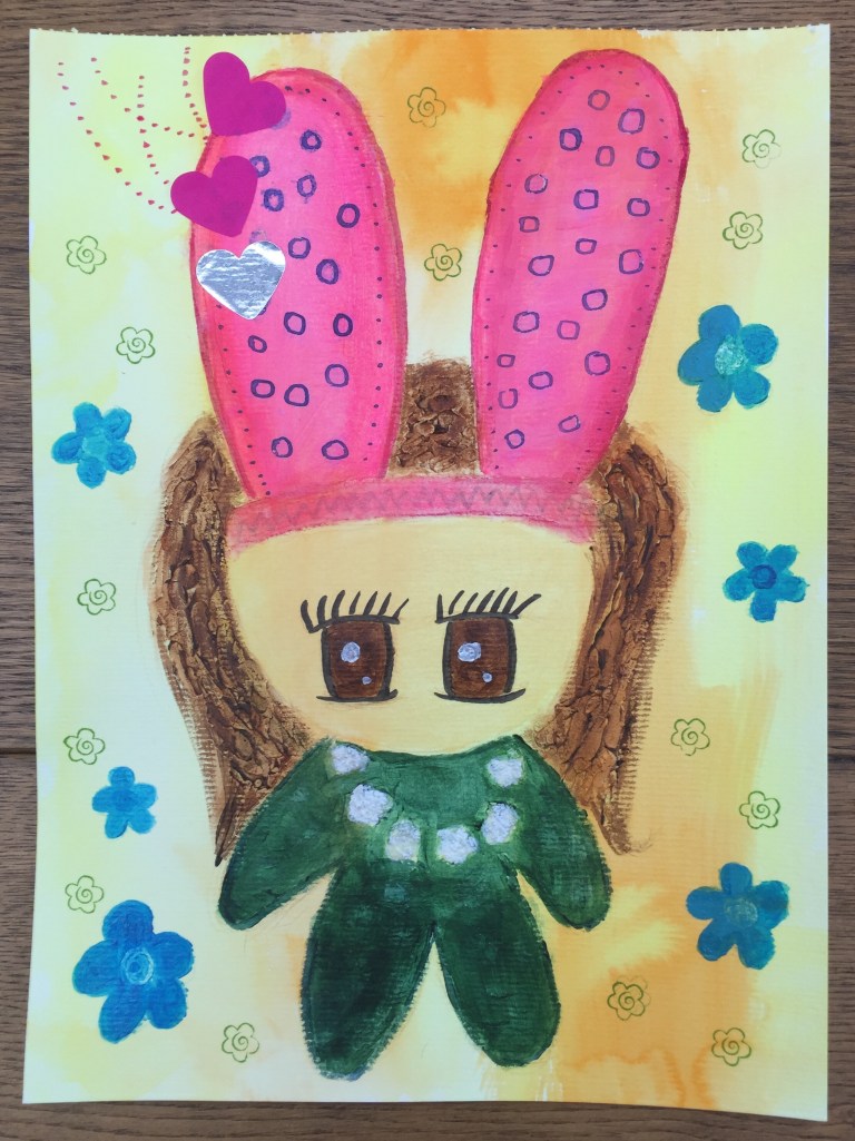 I was hoping to paint some portraits but I guess that didn’t happen. But never mind. I’ll just keep practising. Still, I’ve ended up still doing something different like making a bunny out of a cute little girl!