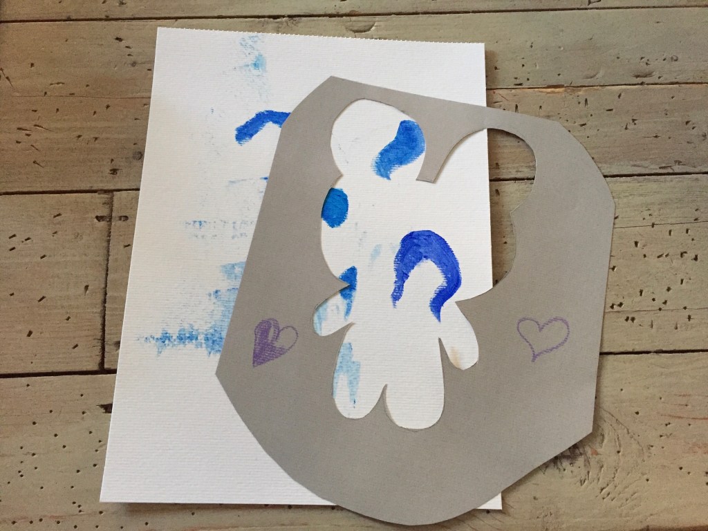 So here goes part two of the trilogy. This time I’ve taken the rest of the paper from the Teddy Bear cut-out I had used for the last painting, Brown Teddy, and used the outline as a stencil! I was curious as to how this would all turn out. You see, I never like to plan things in advance to avoid disappointment and find it more adventurous to make things up as I go along.