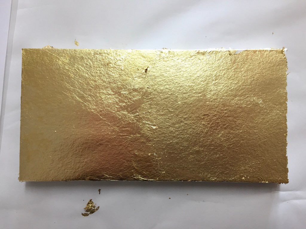 Over time though the gold flaked off on the edges as you can notice. So I decided to continue the painting at today’s lesson and mended the areas with bits of gold leaf left over from the workshop.