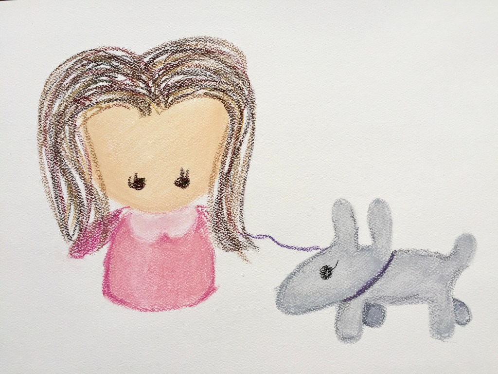 But I felt the paper and thought it’s really smooth yet has some “teeth” in it. In other words, good quality paper especially for pastel drawing. So I got curious and thought I’d put it to the test. First thing that came to mind was Little Girl walking her dog. I haven’t drawn Little Girl for a while. She is also known as my alter-ego, Mini Me, The inner child part of me. Playful but innocent, cute and kawaii yet adventurous and up to mischief. Today she’s walking her dog. As a child I was quite afraid of dogs though!
