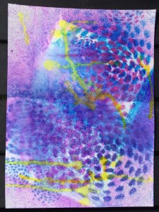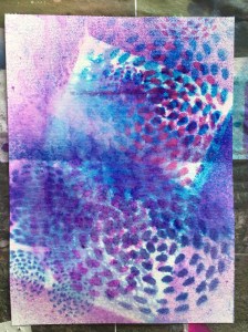 Then I added another colour of ink (Perriwinkle Blue) and spritzed some water on the paper and let the ink run whilst wiping up the excess. Repeated this with two more layers of ink in London Blue and Rose Quartz.