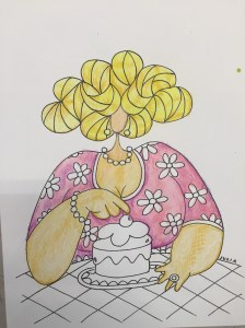 The workshop was concluded by having a go at colouring in whatever we wanted to choose from. I chose some pencils for the hair and went for the Neocolor for the dress. I have yet to complete the exercise but anyway here it is.