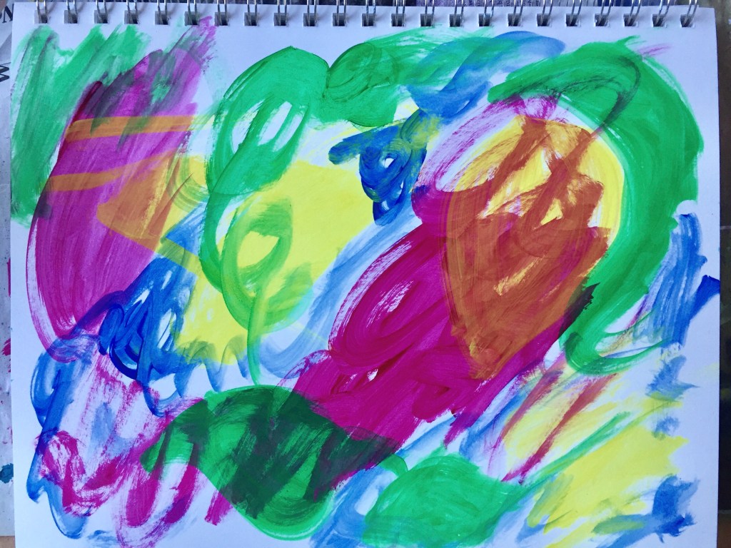 Colours used were Magenta, Cobalt Blue, Permanent Green and Hansa Yellow Light. I quite like their fluidity. And it’s called Fluid Acrylics for a reason. And yes it’s quite well- pigmented so still manages to maintain intensity and not appear watered down. Next I just layered away with some acrylic paints (Dina Wakley,’s range) and inks (Daler Rodney’s and Royal Talens) to get a comparative feel of them and seeing how well they work together. And just to add some flavor to the painting I scribbled some squiggles in using my usual colourful set of Cray-Pas oil pastels. But hmmm what next? I decided to sleep over it and continue with this when I was ready to go back to it.