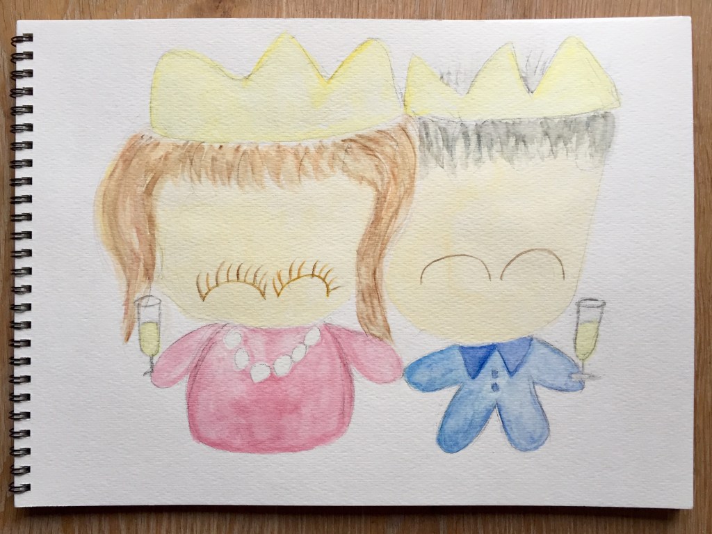 Just a kawaii watercolour painting I made yesterday. I really love the pans by Winsor & Newton. Though not obvious in the photo, I used Kuretake Gansai Tanbi paints for the gold crown and champagne. Enjoy!