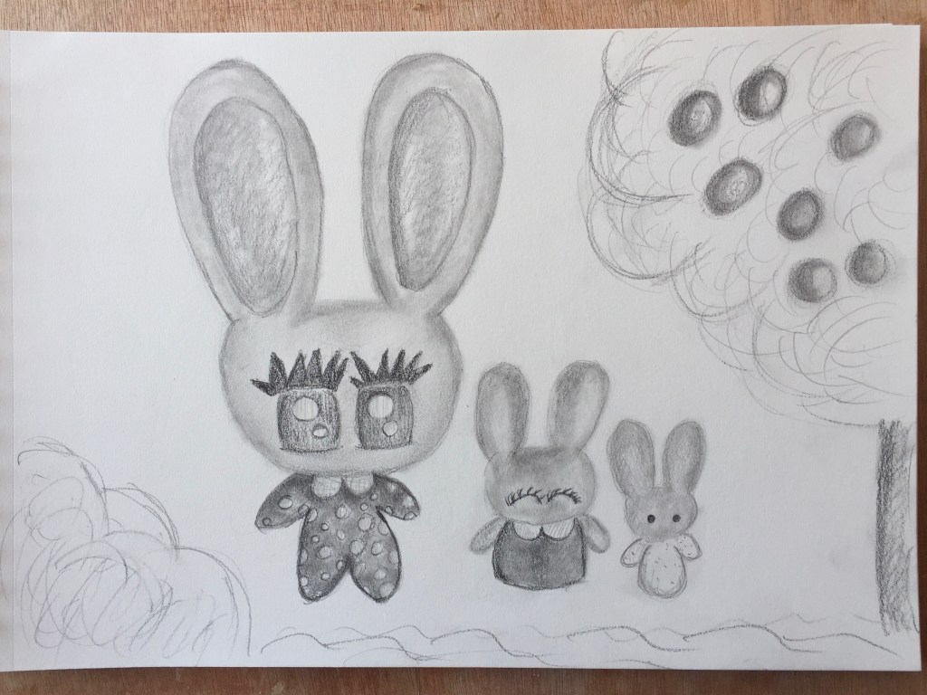 Here is Little Bunny enjoying playing outside with her little sisters and posing for a sketch. She is really kind and sweet and looks out for them. And they’re lucky to have a big sister who’s so kind and caring. Let’s go and say hi to them! It’s a special occasion for them because it’s Easter.