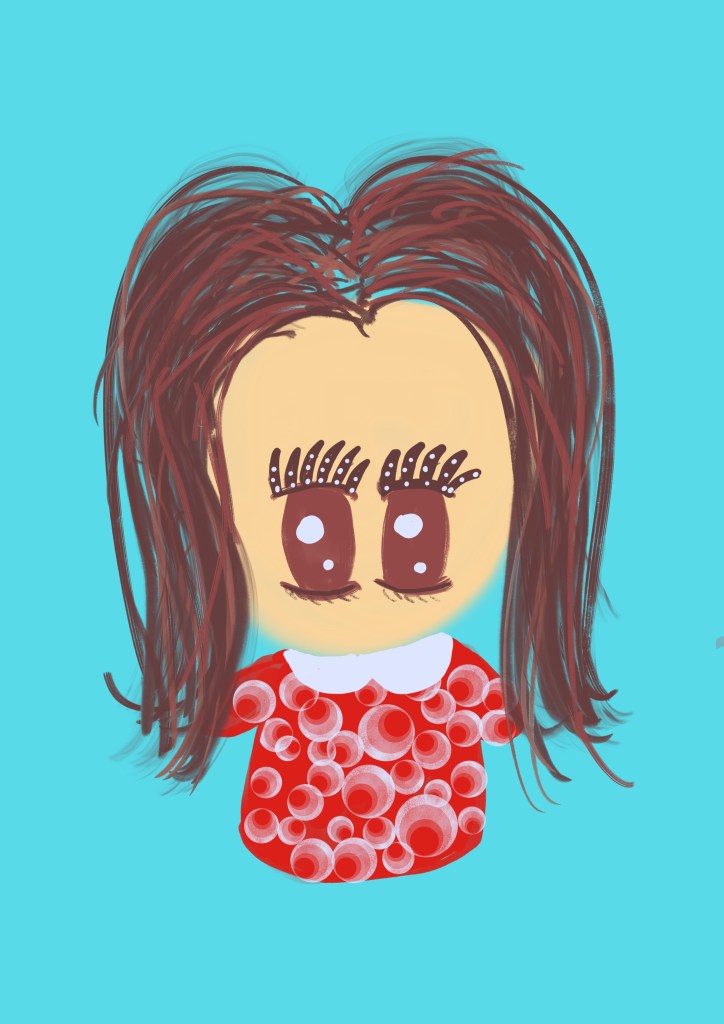 One lazy evening, I decided to take my iPad and draw about it. Used the Procreate app again. I started with an azure blue background and then started sketching Little One. For the face, I suggest using the air brush and for the hair, a variety of different tones to create some dimension. And the retouch tool for the hair for some fullness.