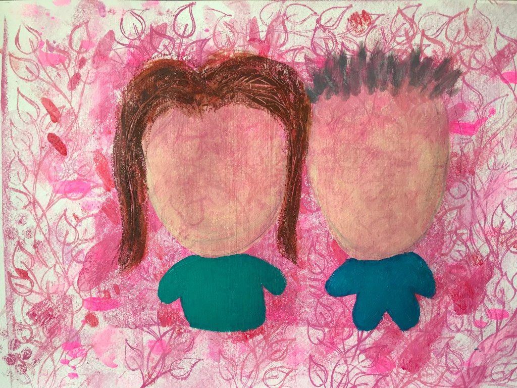 Then I simply painted us using acrylic paints by Dylusions (clothes) as well as Jane Davenport’s (skin and hair) . So far so sweet!