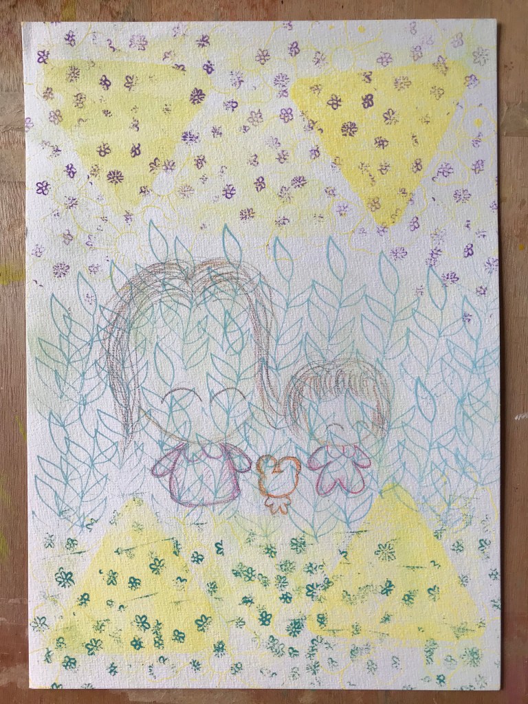 Rather than watercolor paint, I actually used water-soluble coloured pencils. A set of Caran d’Ache’s Prismalo pencils were sitting in my drawers ready to be used after some time. And now!