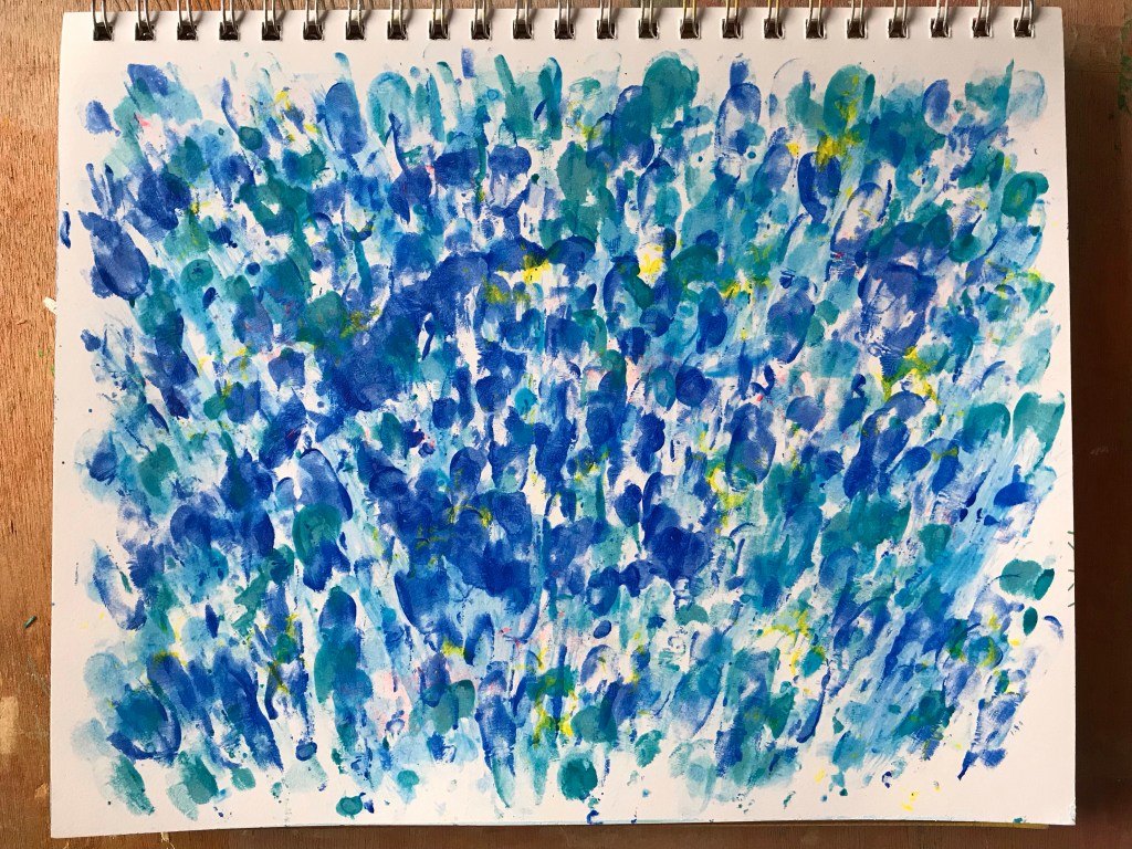 I made this background a few days before for fun. It started with dotting on some leftover yellow paint on my Strathmore Mixed Media paper from a previous piece. From that, I randomly applied some acrylic ink in a variety of blue shades . Just dotted the inks with the pads of my fingers. Joining the three inks (Fluorescent Blue, Tuquoise and another blue shade) was some fluid acrylic in Cobalt Blue. At the time I was not planning to use it for anything in particular but to just keep it and go back to it when an idea cropped up. My mother’s birthday happened to fall a few days later though which gave me a perfect opportunity! I loved the look of this background and found it perfectly appropriate for the occasion. Looks quite floral and blossomy which mama would love too.