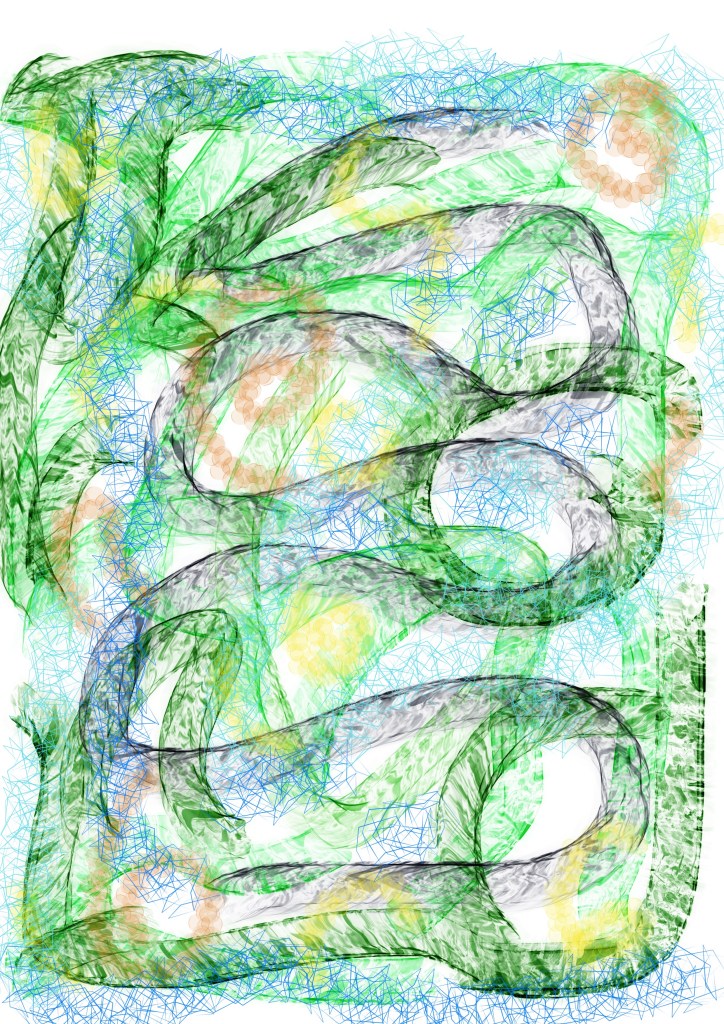 It started with just trying out a bunch of effects with my finger. I began scribbling around with the Marble, followed by Opticon and then Polycon. Whatever they represent, I think they look fun! Another layer was added from which I decided to do some painting with my stylus. Went for Gouache this time and first thing that came to mind was a teddy bear! I must still be deeply affected by the poor koalas in Australia. And this time, I made her pink because it complements with the background colours and also I thought making teddy kawaii would be uplifting. I also added the sun in bright yellow.