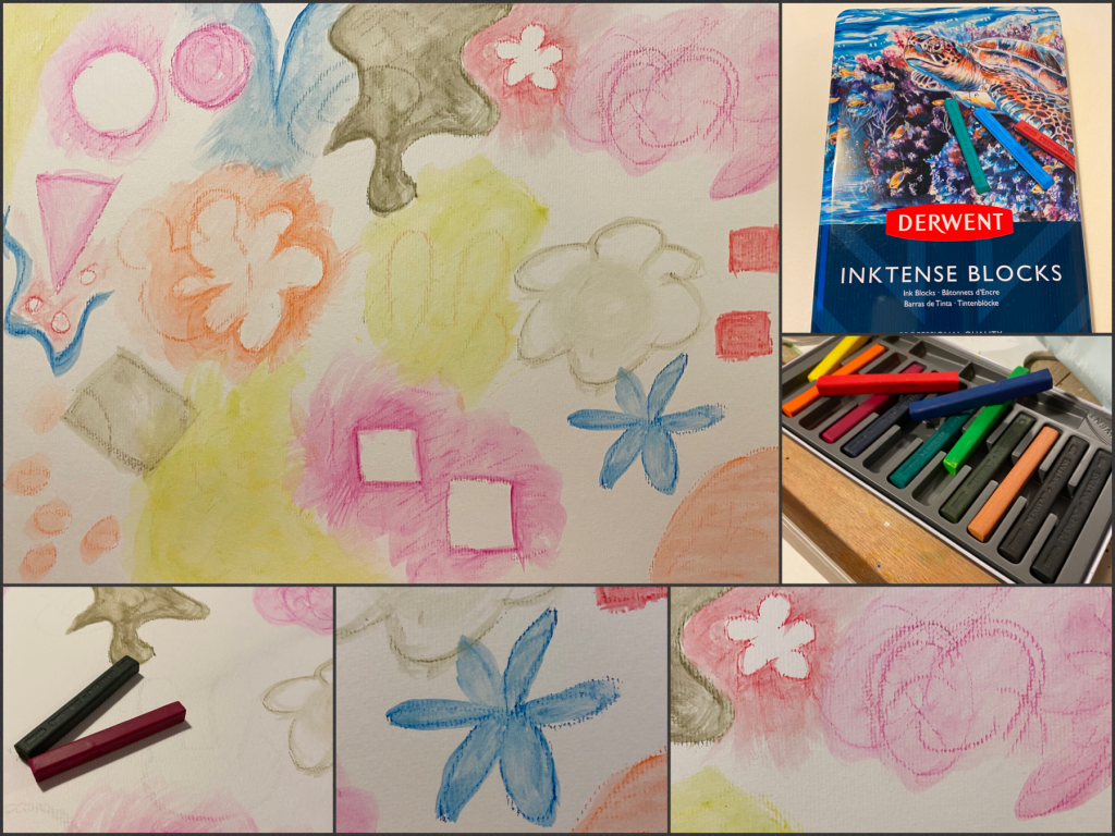I wanted to try out my new Derwent Intense Blocks. They were purchased more than a year ago but just ended up in my box of art supplies and thus never got used till now! And so I decided to give it a shot. According to the package, these blocks are water-soluble and creates an ink-like colour when combined with water. Once dried, they become permanent. As such, they can be worked over without affecting the previous layer. So I decided to put it to the test! First draw the shapes I like and then with wet brush spread the colour.
