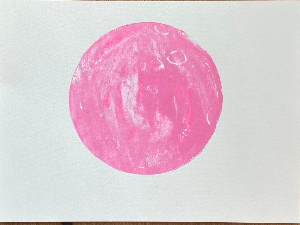 Enjoying your Easter weekend but staying safe? Today is Easter Sunday so another bunny painting! Remember earlier this week appeared the Pink Moon? It was 4:30 am when it happened and unfortunately not wanting to wake up especially for that, I missed it. Instead I thought I’d paint about it instead using my creative imagination! I painted my first one a few days ago, but since I had extra paint and a ghost print of the moon, I thought I’d use it and this time do something cute like incorporating a rabbit.