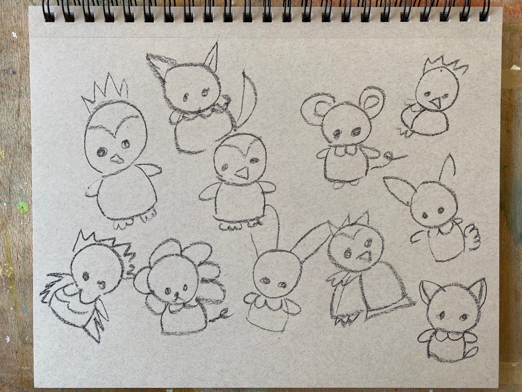 A quick sketch and colouring I made a few weeks ago to practice drawing little animals. Another artist whose work I like is Juliette Crane. Mainly mixed media and intuitive, much of her work is centered on cute animals and characters, typically known in the artist world as “whimsical”. And to get some more inspiration and ideas, I’ve been following her free tutorials!