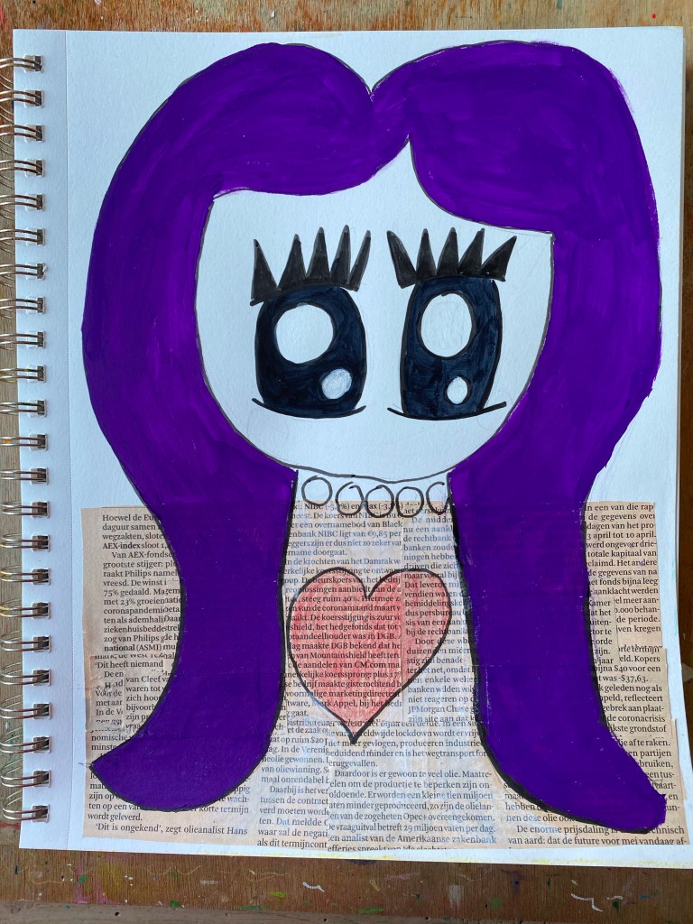Along with the home isolation during the COVID-19 crisis comes more creativity! That’s so true as I’ve been discovering, and Little One too. She just found a purple wig in her closet which she had bought some time ago on eBay to wear for a fancy costume party. Just for fun, she don it back on and began putting some makeup on and stuck some flowers in her hair. And once again, Ady Almanza’s tutorial couldn’t come at a better time as I decided to paint another kawaii piece of Little One’s adventure!