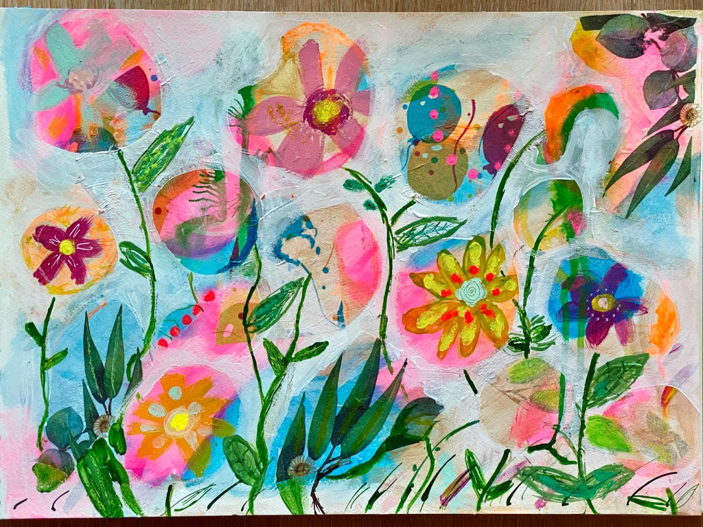 It’s been a rather strange spring because of the Covid-19 crisis. Between March and now we’ve been more or less couped up at home not being able to enjoy the coming of Spring. And before we know it, we are now in June! It was only a week or so ago I was actually able to go out and enjoy looking at flowers! Then I realised what positive vibes they bring. I of course love painting flowers, but this time I thought I’d try some abstract stuff, going for negative space.