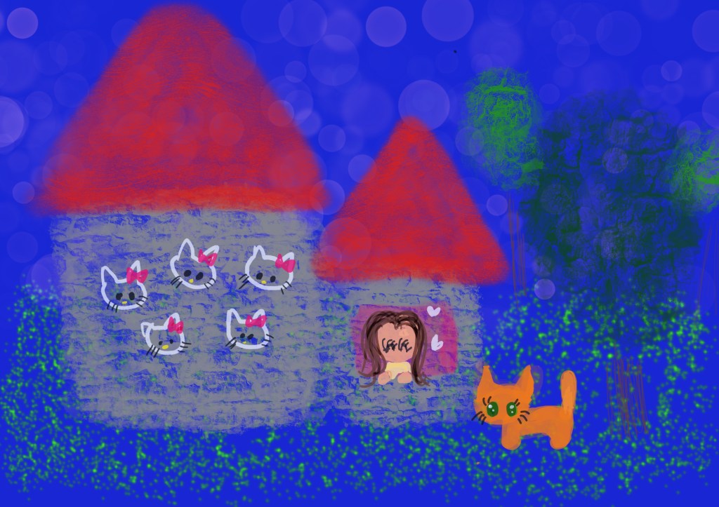 As the 3rd and 4th layers, I went for markers and gel pens to draw in the details. That way, the details stand out more compared to painting with acrylic or even gouache. Besides, the details are quite small. Only the pink window was painted with watercolour. Loving the Hello Kitty’s around the house, representing how much I’ll want to be decorating the house with them! And that’s me all happy as I peer out the window noticing a cute little kitten pit-patting along. I made her a ginger tabby with green eyes, although all cats of colours and breed are cute anyway!