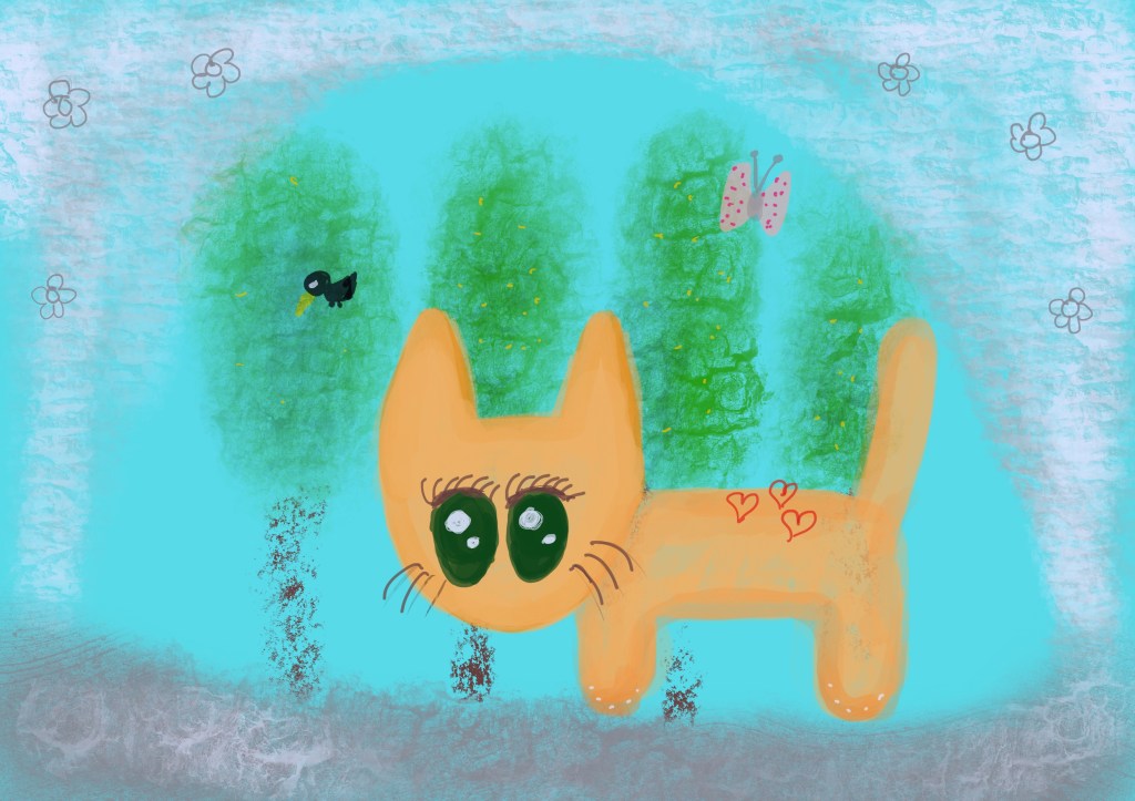 The door was wide open, and Ginger put one paw forward. So cute! She was wondering whether or not she should try and enter or not. “I would love to let you in, Ginger” I regretfully had to add, “but I will get scolded if I do”. As much as I love my boyfriend, he is unfortunately not a fan of animals in the house. Oh well! To make up for the sorrow, I decided to paint about my encounter with Ginger on my iPad!