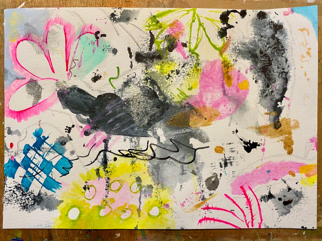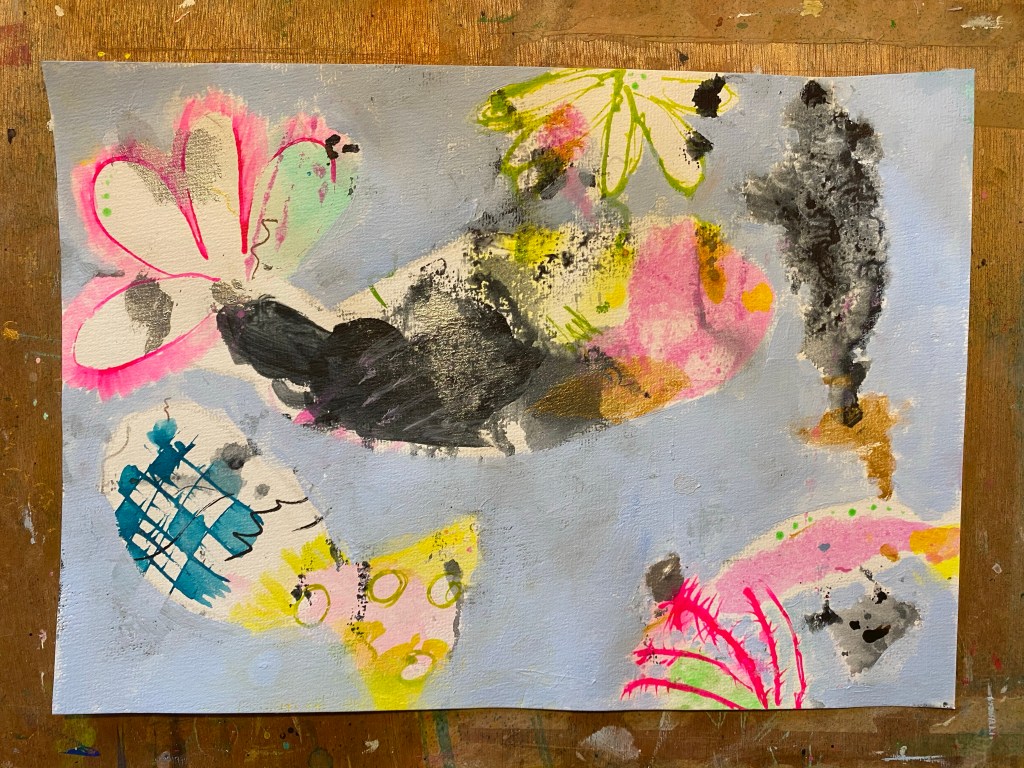 What fun that was recreating from scrap paper! I’m also getting the knack of negative space painting, as I love the effect of it. The piece turned out beautifully with all the vivid colors against some of the darker shades like Payne’s Grey. I’ll definitely be recreating more from excess paint and scrap paper!