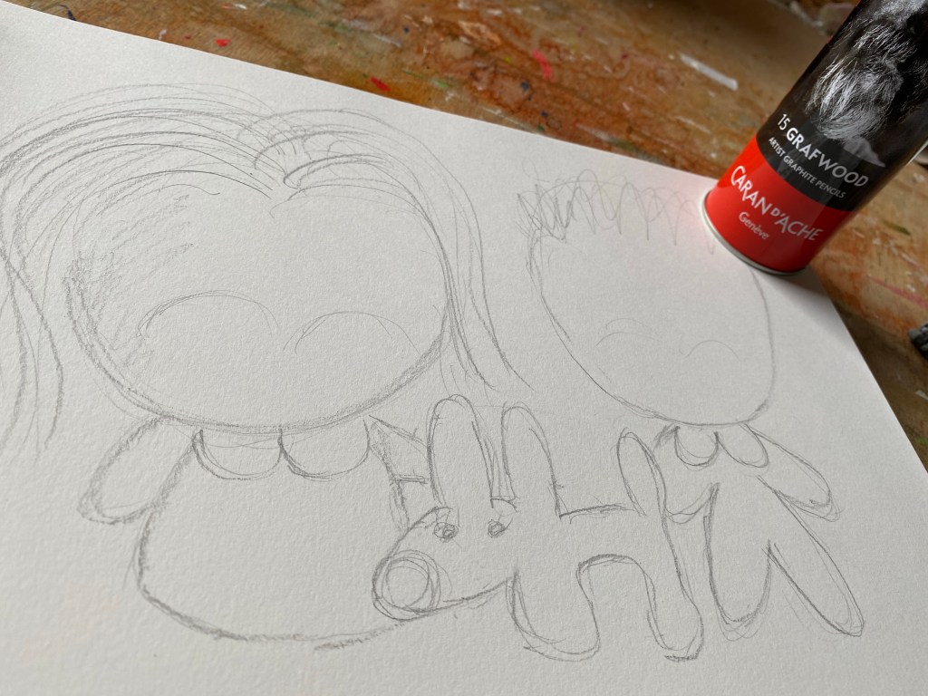 Correct me if I’m mistaken but I believe the breed of this dog is Labrador Retriever. Heck, I even had to look it up and Googled it just to make sure! And now I took this opportunity to sketch about it with my set of Grafwood graphite pencils by Caran d’Ache. Love that set as they come in 15 different lead softness ranging between 9B to 4H. I had so much fun drawing about this dream! So kawaii and romantic that I’m considering creating a watercolor version of it.