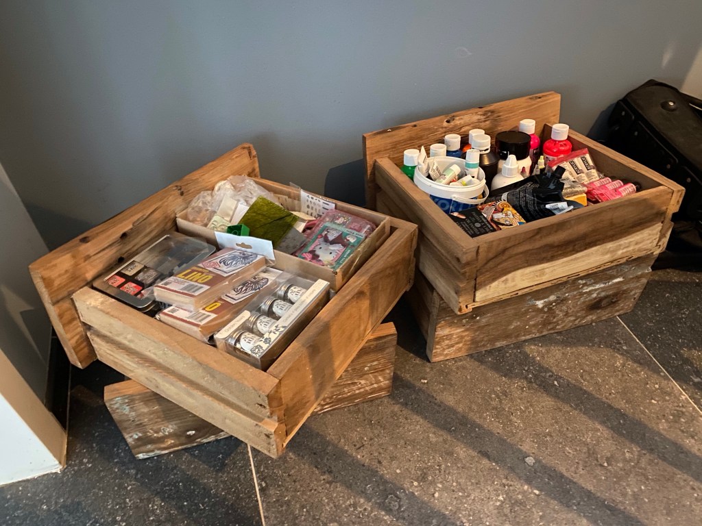 So far so good. Next step is transporting my chest of drawers from Amsterdam. It has a number of small drawers of different sizes in which various tools and supplies could go. Now why didn’t I think of bringing that too with the moving company? Never too late. We’ll be bringing that in and will be making more changes. Meanwhile I’ll resume painting and will be improving the space bit by bit. Watch this space as I will be writing about it soon with more photos for you to look at!