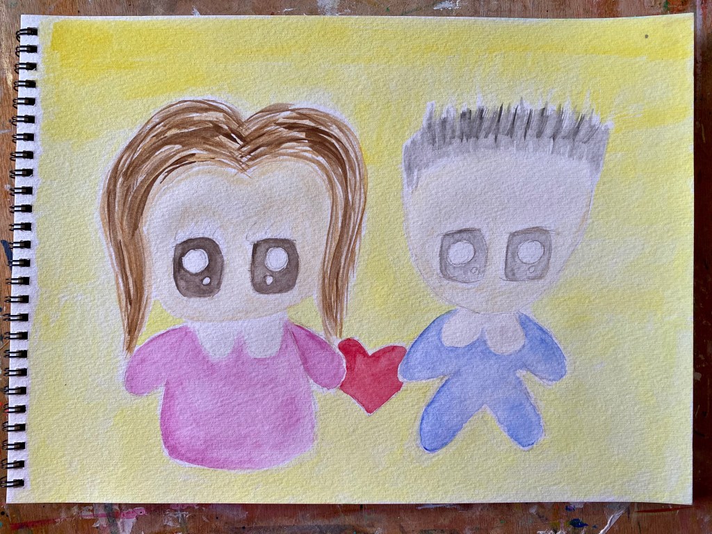 In my watercolor sketchbook, I made a pencil drawing of me and my boyfriend all happy for finally being able to be together at last! We do have our days of course and things can be quite stressful and exhausting with the moving and settling in. But we still love each other and look forward to a life together! Anyway who says moving homes would be easy?