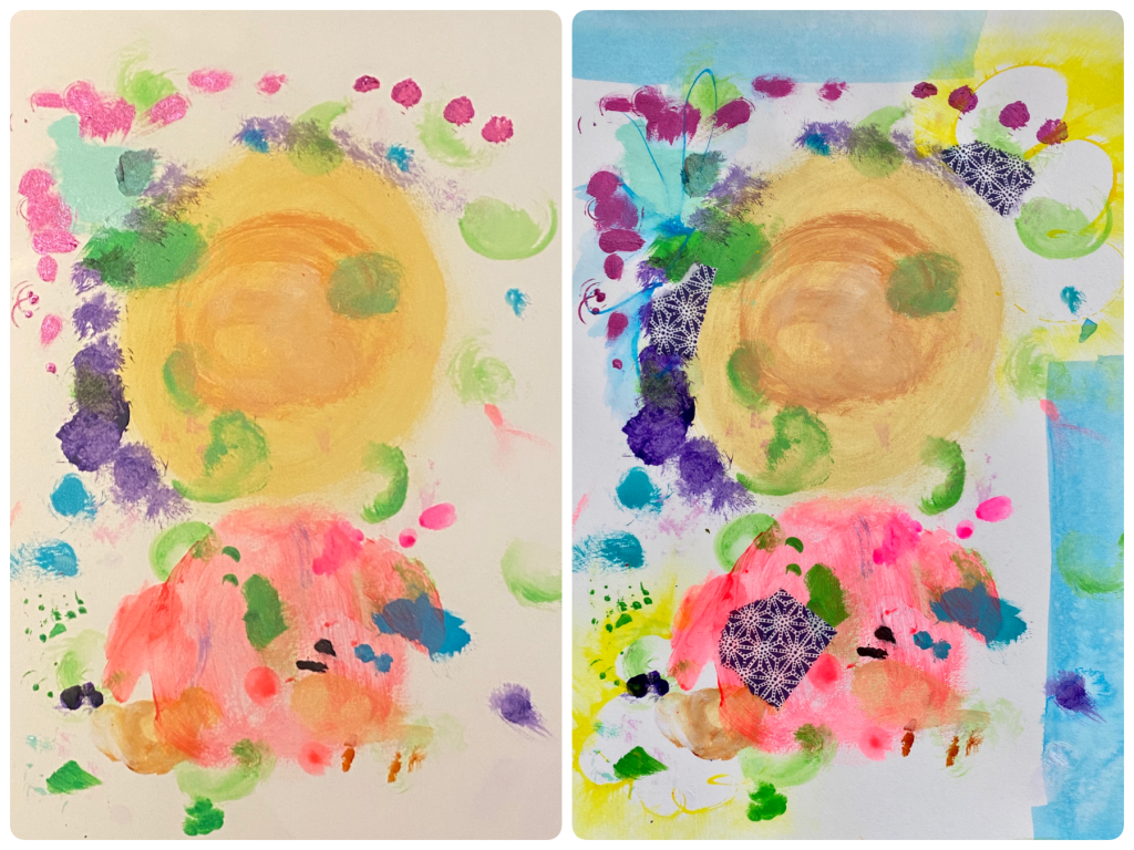 This painting was totally unplanned. I was actually working on another painting at the same time (coming up soon!) Since I don’t like to throw away excess paint when painting, I prefer to wipe all on a separate sketchbook and see what I can recreate from all the patches and scribbles of colors. One of my favorite ways to get creative. And of course, waste not want not!