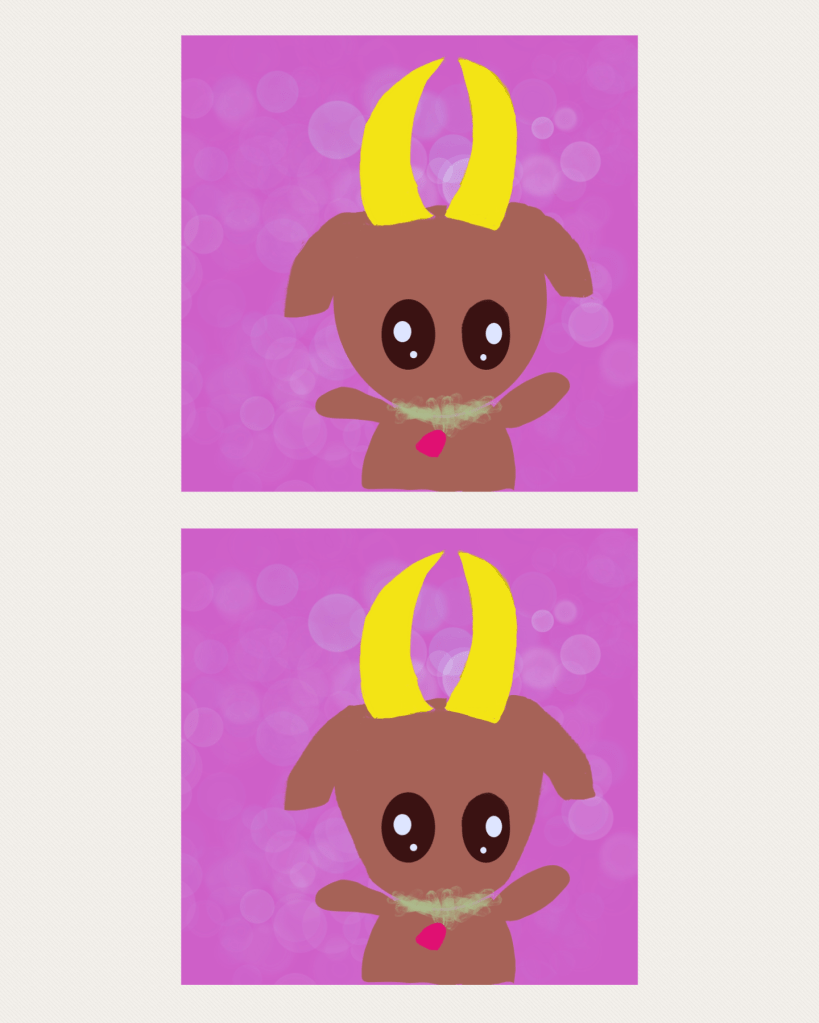Once I drew in the whites of the eyes in Layer 4, I was not happy with the shapes of the ears and face. Though cute, I felt they were too round and didn’t look anything like an ox! Tweaking was done by erasing and colorfilling or refining the edges by a pen.