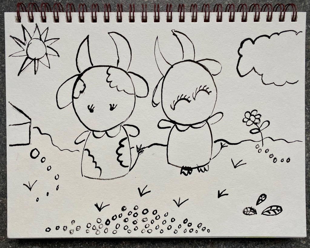 I should do this kind of painting more often, especially as I enjoy practicing whimsical styles. Just simply drawing is also a wonderful way to relax and let your mind flow. Nothing is more satisfying than developing something kawaii based on fantasy and imagination. And now it’s so much fun watching the Cow and Ox play together, radiating positive vibes which we all need during these difficult times. Stay safe, everyone!