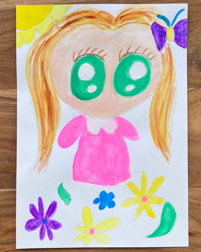 I ought to use gouache more often as I do love this chalky finish with the strong colors. The pure version of this paint though ought to be tried out without the acrylic mix. I don’t have any yet but once I do some research as to the best brand, it may be worth investing in a few shades of them. Meanwhile, I am happy with what I have especially when I can paint my Little One again in bright radiant colors!