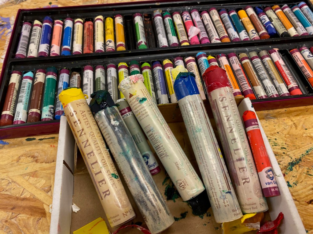 At Dieter’s class, I expressed my interest in trying out oil paint sticks. I first came across oil paint sticks in Juliette Crane’s on-line classes and was curious to find out more about them. The ones that are used in Dieter’s class are by Sennelier. With these sticks you can also combine with oil pastels as they are the same family. They are quite versatile to use but could be messy at times so I thought it best to practice in class first then when I’m more accustomed to them, try at home. Another limitation is that as they are oil based, they take weeks to dry. Then you have to coat the painting with varnish and again let it dry for weeks. And the varnish can be quite smelly. Still, I love the results and we shall see below.