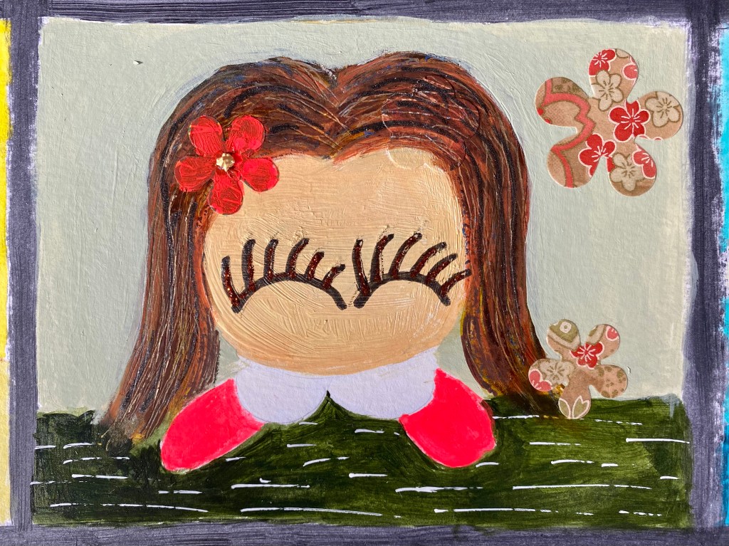 And this is the last of the Zooming series. Today I’m introducing last but not least, the organizer of the Zoom meeting… Little One! She is featured a lot in my work as my muse and inner child but would you like to know more about this sweet and cute yet adventurous and feisty character?