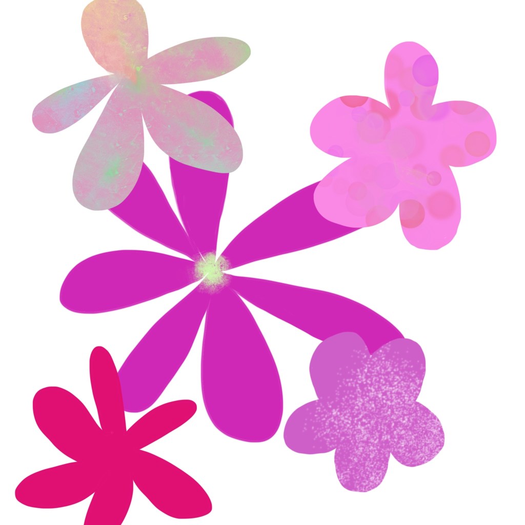 The painting begins with a square blank “sheet”. Grabbing various shades of pink, I randomly doodled in flowers in different shapes and forms, ensuring that each flower was accompanied by a different layer so we could later play around with positioning, forms and sizes. Standard medium here is airbrush, by firstly drawing it and then having the colors auto-filled in.
