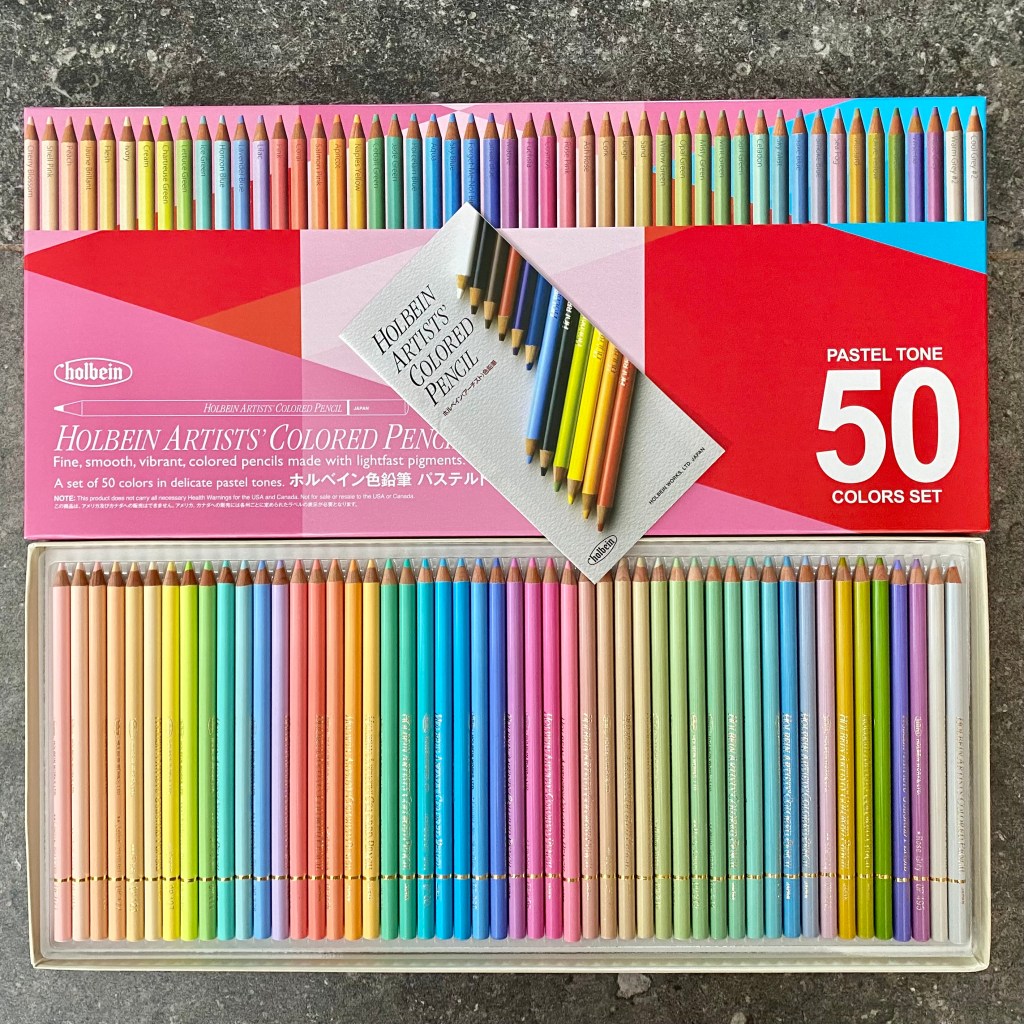 So let me show you what pastel-tints in colored pencil form look like on white paper. Well, they didn’t appear as “pastel” as I was hoping, but I sure love how vividly they turn out. Holbein colored pencils are also known for its high quality. A combination of oil and wax based, they are highly pigmented and hence give a strong “creamy” look on paper. No need to press to hard. I have to say therefore, I’m pleased with the outcome.