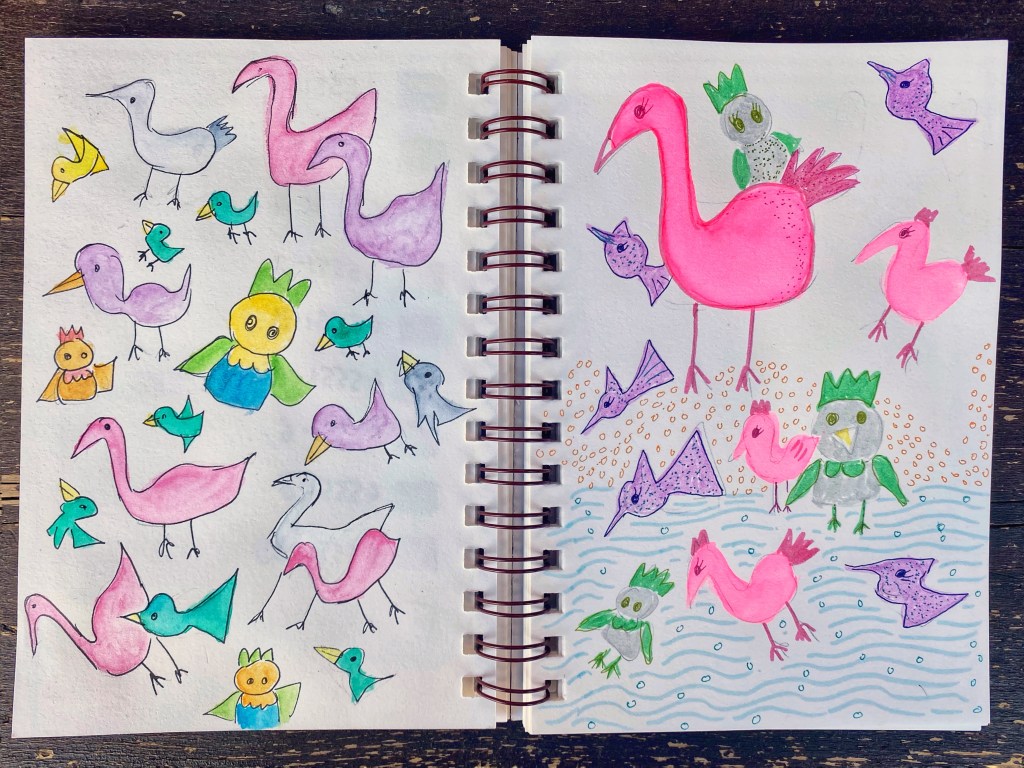 And now I wish I had bought myself a properly binded sketchbook which many artists use as journals. For the moment I’ll have to do with the rings in the middle but I shall make it a note to get one when I’m back home. The doodling was nevertheless so much fun and a great way to practice my whimsical animals. Plus it’s a means of relaxing after a day of sightseeing and photographing!