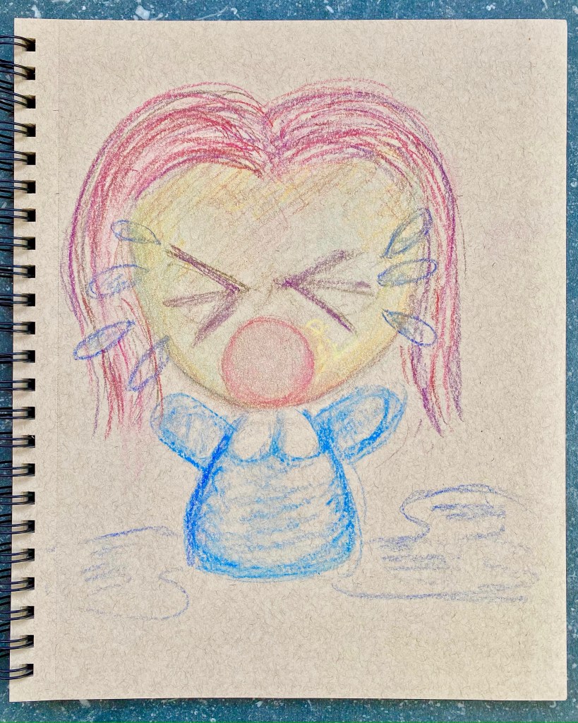 Unfortunately, they are right, there isn’t much I can do at the moment but sit and wait. Perhaps drawing about it though might help me deal with the anxiety. Once I was able to compose myself, I found an empty page on one of my sketchbooks, randomly choosing one with toned tan paper . It already had a drawing on it which I had started earlier when testing my pastel-toned colored pencils but abandoned as it didn’t work too well. Instead of tearing the page out, I thought I’d be resourceful and draw over it. Out came my set of pastel pencils by Derwent, as I figured pastels will stand out more against the tan paper. So far so good! And here I began, sketching away and expressing how I really feel. I wanted to cry and scream so on paper I had a good cry. And there I am, standing on a puddle of tears. Surprisingly, the sketching flowed really smoothly perhaps because I was so emotional. A quick sketch to let me vent. Vent on paper and also here on the keyboard as I type this piece. WHERE IS MY STUFF???