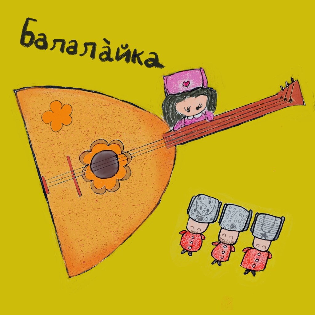Around New Years 2018, we were watching some TV and came across a folklore concert featuring Russian musicians. This was then followed by a brief explanation of a special guitar called Balalaika, It is indeed a very unique instrument, and sounds very pleasant, physically characterized by a “triangular wooden, hollow body, fretted neck and three strings” (Wikipedia). Apparently they come in different sizes ranging from 60cm to 2 meters. Now that large size is indeed huge! At one point that evening, I seriously considered buying one as a wall decoration in our house. Then I discovered how expensive they are and perhaps a bit too bulky. We can only dream, I thought, and hence I got inspired to draw one on paper. And why not make it all sweet and kawaii with Little One clambering on it? Alongside are three Cossack dancers to add to the Russian flavor. I sketched this drawing with some black markers then filled it in with colored pencils.