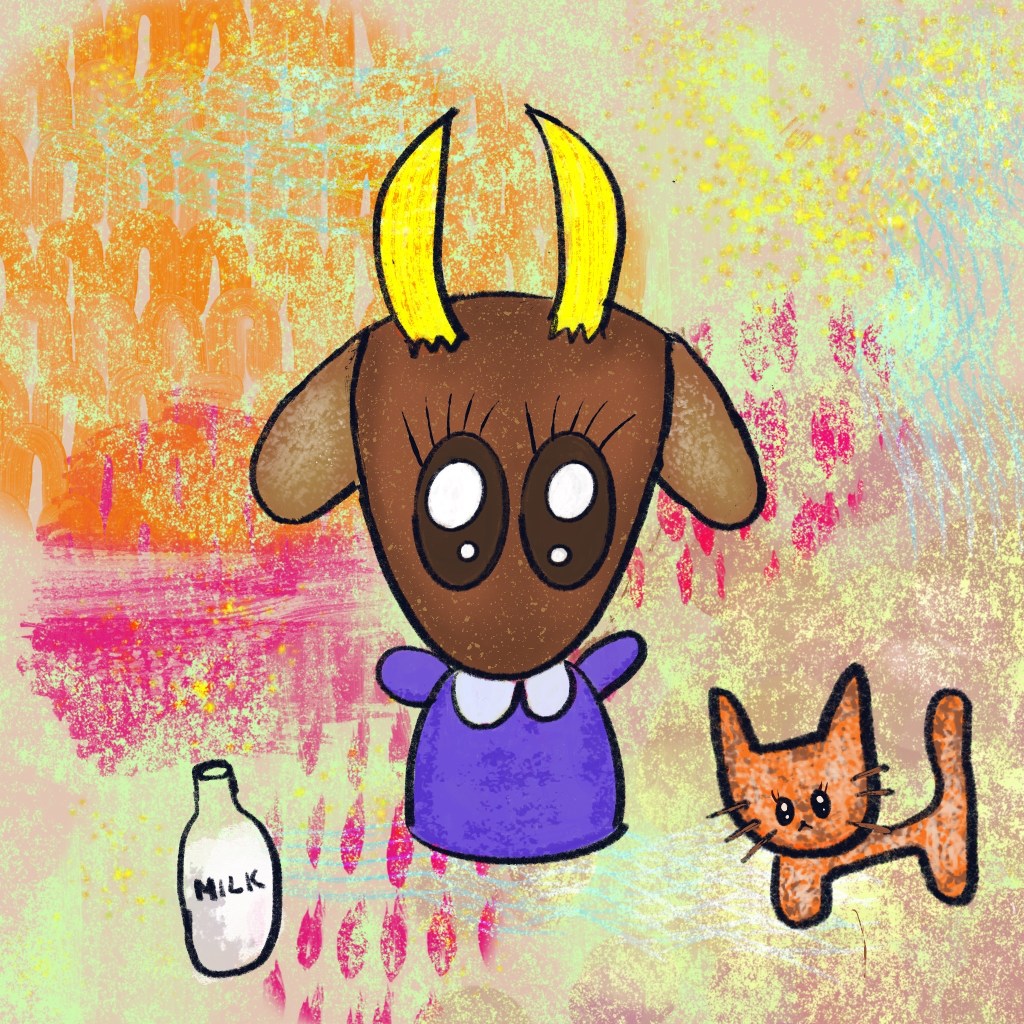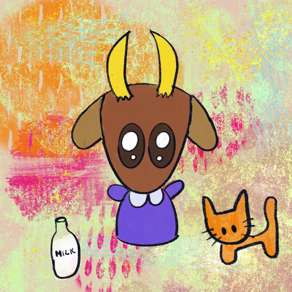 Once I was done and satisfied with the colors, I firstly incorporated some shading to add some dimension. Having individual layers for each part comes handy for that reason as clipping mask is applied. Following that, I incorporated some texture onto the subjects once again with clipping mask so it doesn’t spill outside the area. The cow received some sparkly treatment here. As for the Ginger Kitten, I wanted her a more multicolored and thus added somd brown and white speckles. Even the milk too has some added dimension!