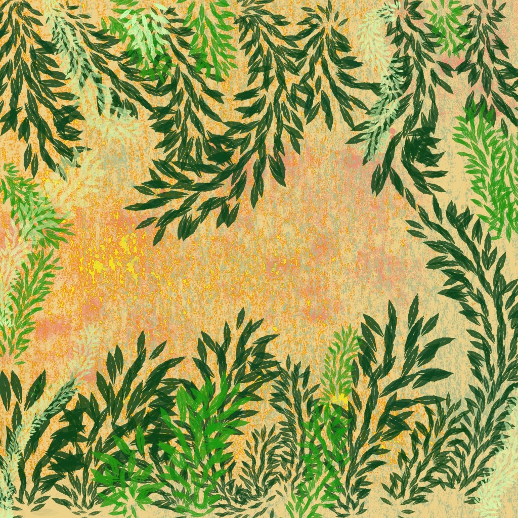 Unlike the previous times on digital painting, I decided to begin with the background. Light orange was firstly chosen as the background color as a random choice. Then I began practicing more with textures by playing around with stamps and brushes before adding a new layer to paint in some plants. A useful tool I bought as add-on were Leafy Mix and Leafy Solid which were included in Jason ‘s Expressive Brushes. So for amazing!
