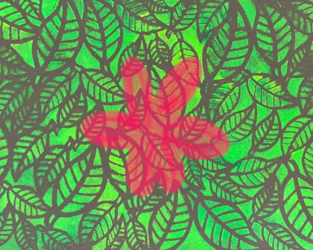 For starters, I imported a photograph of one of my past paintings and enlarged it to fit the whole screen. It is actually a Gelli Print on black paper created with stencil and a blend of green acrylic paint depicting a bunch of leaves and greenery. So pretty isn’t it? Whilst that one gradually developed into a painting, I am glad I photographed it before painting over it because I can now use it as a “template” and recreate another cool artwork!