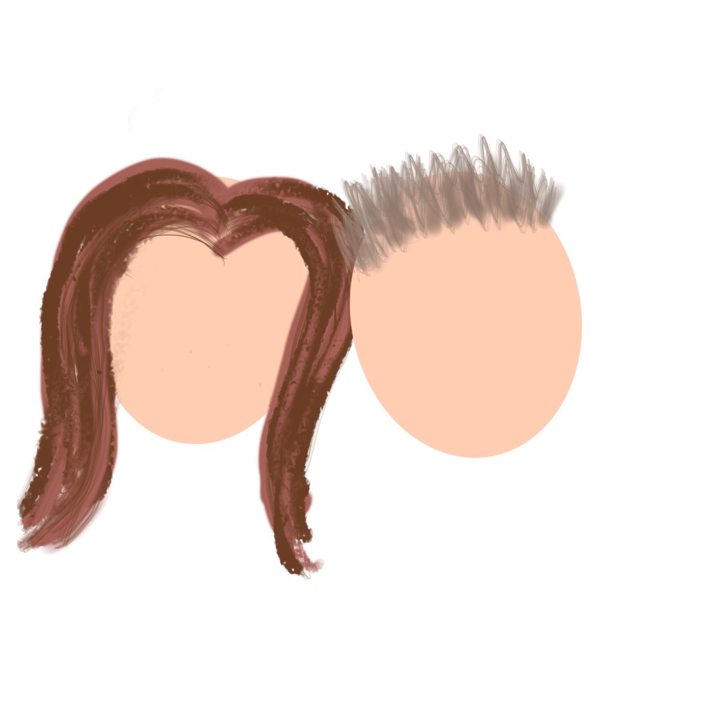 Going for a square “canvas”, I firstly set about drawing us with the usual Airbrush Medium for our faces. Separate layers for me and him firstly, followed by another separate layer for our hair so we can later modify or change bits when suitable. For the hair, I liked that crayon look so opted for Wax Stick in the set from FTOON Crayon brushes (available on Creative Market as add-on) followed by retouching with Flowing Hair.