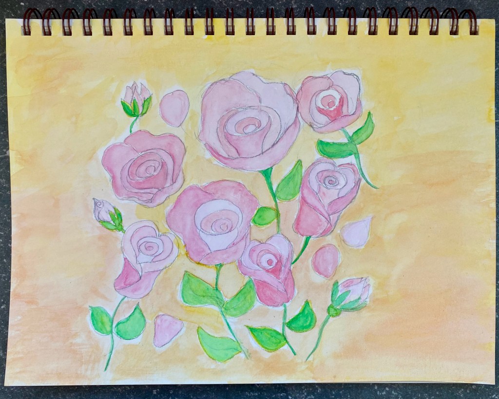 I’m very pleased with this painting. Although not my usual style, it was a great idea to do something different and once again explore beyond my comfort zone. It was, as mentioned earlier, my first time to draw and paint roses, something I never really ventured to try out. However, seeing those roses in my garden the other day gave me inspiration and a good excuse to give it a go, and I am glad I did. I shall definitely be incorporating roses into my paintings from now and would love to learn to draw other types of flowers too!
