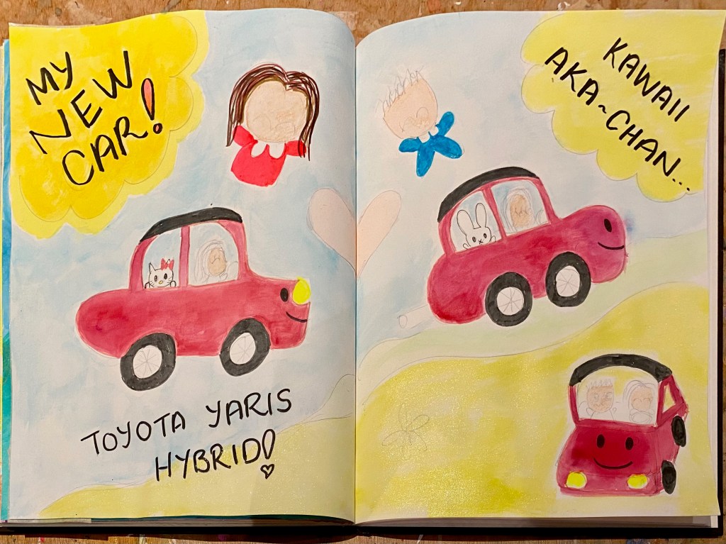 Now that was a fun session again! As I get the knack of art journaling, I very much had to draw about my new car and share my happiness. It was also a great chance to play around with various mediums and enjoy my stickers to get creative. And now, I look forward to painting more about further adventures with my kawaii Aka-chan and sharing here. So where to next? Watch this space!