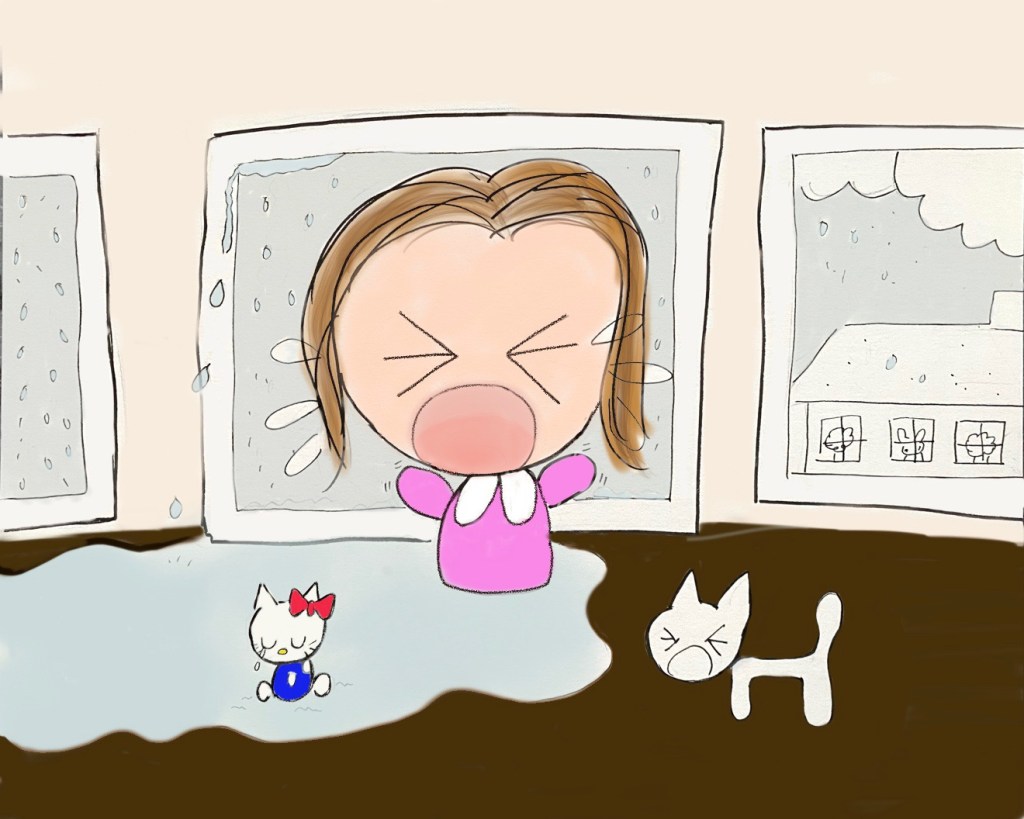 So which sketch was it? On a page from Strathmore’s Visual Journal for Mixed Media, I made my pen sketch as per Weeping over Window. At the time, I made a pen sketch about my distress and panic over a window in our attic leaking water from a heavy rainstorm. My BF had been away at the time which made me feel even more helpless but I of course managed to deal with it in the end. Hence a rant sketch, and here it is: