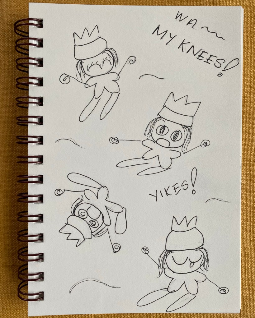 And we’ve sadly had to cut our trip short and will return home after continuing on our journey to Italy for 2 nights rather than the anticipated six. Hotel bookings for that last journey was fortunately refundable. That’s right, first it was my left ankle, then my lower back and now my right knee! Bad things come in three’s don’t they? I’ll be ok. I’m just glad I trusted my instincts and visited the doctor before my injury becomes worse… meanwhile sketching about it made me feel somewhat better!