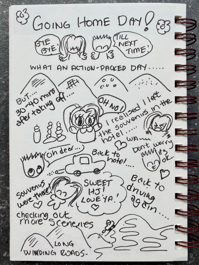 And yes indeed an action-packed journey back home! But we arrived safely and now look back on the adventure of ups and downs as great memories. Besides, it gave me the chance to practice doodling on my sketchbook intuitively and “as it is”, whatever came to mind, without having to plan my drawing. That’s the fun part of getting creative. Now I can get further inspired and can even develop some of these ideas into a painting! And I wonder what i can start with…